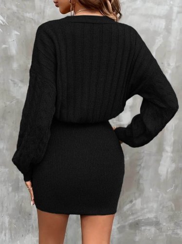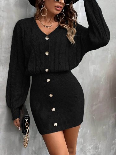 • Kadın uzun kollu v yakalı önden düğmeli kısa triko elbise