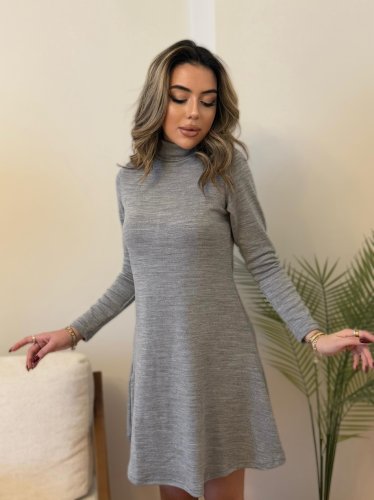 • Kadın uzun kollu balıkçı yaka salaş kusa akrilik elbise